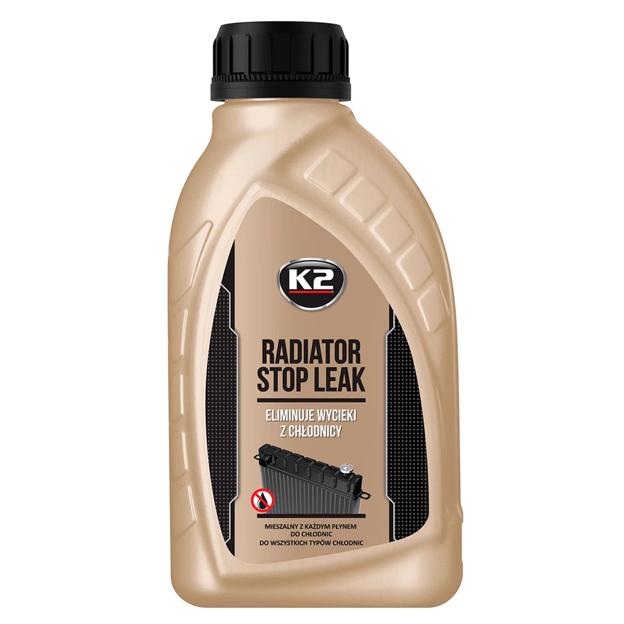 Герметик радіатора K2 Stop Leak автозасіб, який можна купити в Україні для усунення протікань в системі циркуляції антифризу. Характеризується сумісністю з гумою, пластмасами та кольоровими металами, а також усіма класами антифризів. Підходить для використання в авто як із бензиновими, так і з дизельними двигунами.